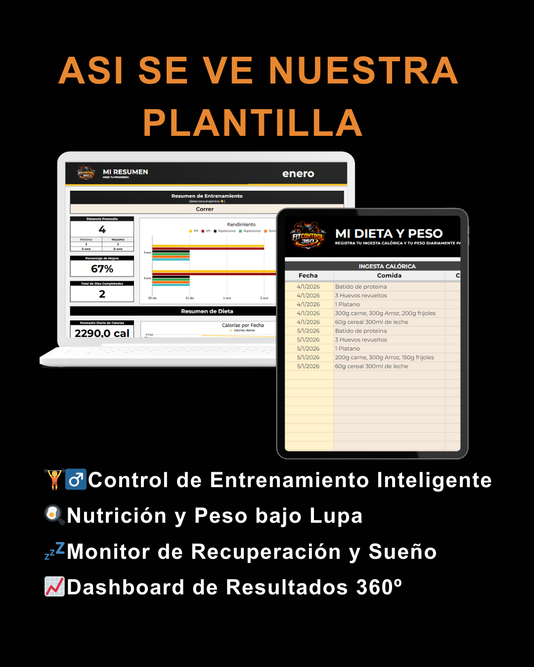 Deja de entrenar a ciegas. Con FITCONTROL360 conviertes tu esfuerzo diario en progreso medible, claro y constante usando un sistema simple en Google Sheets.